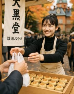 令和7年11月3日(月・文化の日)、4日(火)10時より。札幌赤レンガ旧庁舎前にて、「しんきん赤レンガマルシェ」に遠軽信用金庫の皆さんと弊社大黒堂の信州おやきを出店販売いたします。全道各地のグルメが集まるようなので、お近くの方はぜひお立寄り下さい!